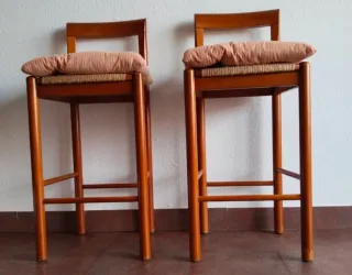Conjunto de dos sillas altas de barra con respaldo y apoyapies Madera maciza