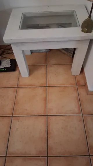 Mesa auxiliar con un diseño moderno y elegante. - Estructura de madera pintada en blanco. - Superficie de cristal.