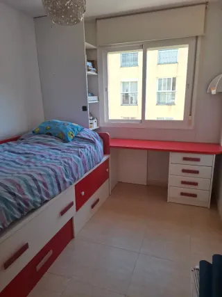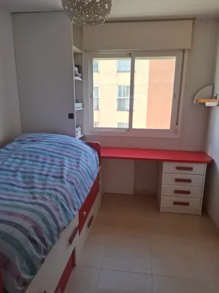 Se vende cama de 100x200cm con escritorio integrado de 55x155cm. Ideal para optimizar el espacio. - Estructura de madera. - Detalles en plástico.