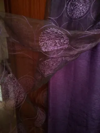 2 hojas de cortinas de Chiffon Morado con Círculos