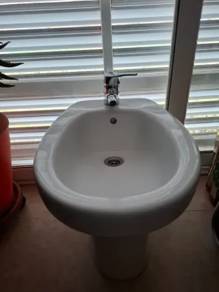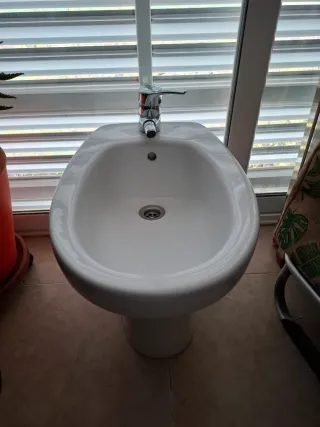 Bidé de porcelana con grifo y desagüe. - Diseño moderno y elegante. - Fácil de instalar. - En muy buen estado se ha quitado por no usar