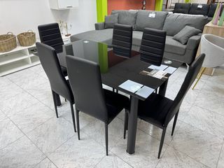 Conjunto de Comedor Negro + 6 Sillas ¡NUEVO!