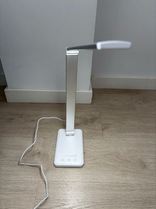 Lámpara de escritorio con diseño moderno y cuidado ocular. Ideal para tu espacio de trabajo o estudio. Se vende porque me han regalado otra muy parecida y esta casi repetida. - Ajuste de altura y ángulo. - Base estable con controles táctiles. - Iluminación LED eficiente.