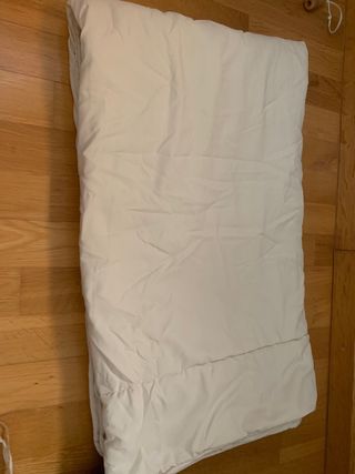 Se vende juego de sábana bajera para cama de 90x190 cm y una manta.todo x sólo 1€ - Sábana bajera de color blanco. - Manta a juego.