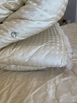 Colcha 250 x 270 cm para cama grande con 8 almohadas con pedrería Swarovski nuevo sin usar de color beige de lujo espectacular Con manta decoración de 130 x 140 a conjunto
