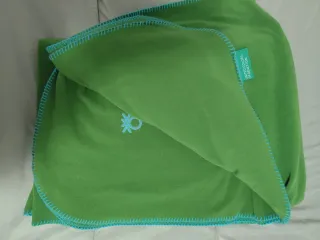 Manta suave y acogedora de la marca Benetton. - Acabado con pespuntes en color azul. - Logo de la marca bordado.