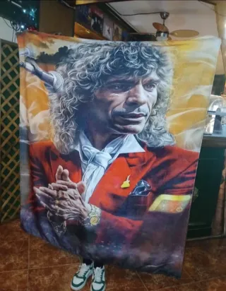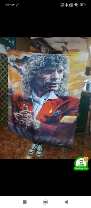 Manta polar con un diseño vibrante de Camarón de la Isla. Sus dimensiones son 150x200 cm. - Diseño artístico del cantaor. - Tacto suave y cálido.