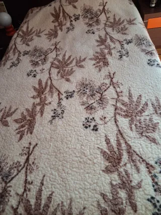 Manta suave, para cama de matrimonio, con un bonito diseño floral en tonos beige y marrón. Marca Paduana. Recoger en Logroño