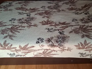Manta vintage con un diseño floral en tonos tierra. Su textura suave la hace muy acogedora. - Diseño de ramas con bayas y hojas. - Base de color beige con estampado en marrón. 100%lana de oveja merino. Para cama de 1,05