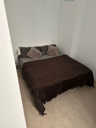 Cama doble Medidas: 1,50mx2,00m Base tapizada con 6 patas metálicas Incluye: -colchón -base tapizada -patas metálicas -dos mantas (Tiene 4 meses de uso)