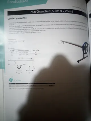 Vendo enrollador de piscina porque ya no se usa. Extensible hasta 7.00 m. Tubo de aluminio de 9 y 10 el exterior. Ver fotos. Regalo cobertor manta reforzada de 12.50 largo por 7.00 de ancho, el empiece de la manta, como 2.5 m, se esta deteriorando, el resto se puede aprovechar, se puede quedar en unos 10m por 7m. También atiendo Whatsapp. Seis Dos Nueve Cinco 3978 Tres Urge venta porque no se necesita y no tengo sitio pa guardarlo. 120€.