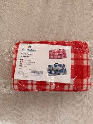 Manta de picnic con un diseño clásico de cuadros de Forro Polar, Aislante e Impermeable, con Asa. Es suave y cómoda para usar al aire libre para pícnics, camping, playa, piscina o yoga. - Diseño a cuadros en rojo y blanco. - Borde negro. - Asa para transportar.