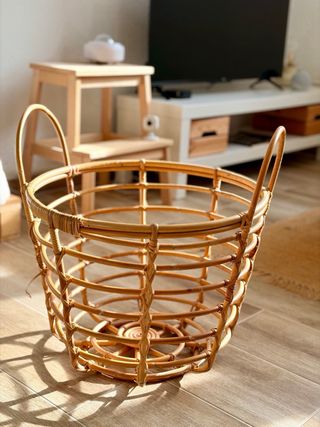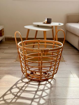 Tengo dos 20€ cada uno Base 33cm Alto 35cm Cesto de mimbre ideal para guardar mantas o como elemento decorativo. - Diseño tejido. - Tonos neutros que combinan fácilmente.