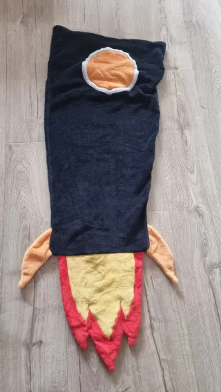 Manta polar con un divertido diseño de cohete espacial. Perfecta para añadir un toque original a tu sofá o cama. - Diseño de cohete con detalles en naranja y amarillo. - Acabado suave y cálido.