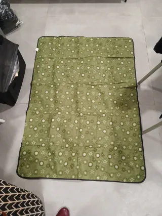 Manta con un bonito estampado floral en tonos verdes, ideal para llevar de picnic, al monte o a la playa. Es práctica y fácil de transportar. 194 x92 cm: medidas - Diseño con flores blancas y verdes. - Borde oscuro.
