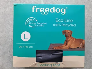 Manta refrigerante Freedog, línea Eco, tamaño L. Fabricada con materiales 100% reciclados. - Medidas: 90 x 50 cm. - Certificación Global Recycled Standard.