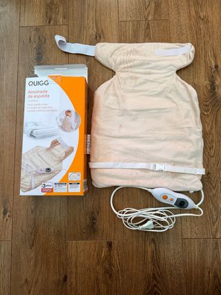 Vendo almohadilla eléctrica para espalda y cervicales de la marca QUIGG (Modelo GT-HPMB-01). Está prácticamente a estrenar, solo se ha usado en un par de ocasiones y se conserva en su caja original con todos sus manuales. Es ideal para aliviar dolores musculares, contracturas o simplemente para entrar en calor de forma cómoda gracias a su diseño ergonómico que cubre desde la nuca hasta la parte baja de la espalda. Características principales: • Diseño anatómico: Especial para espalda y nuca con cinturón de ajuste y cierre en el cuello (no se mueve). • 6 niveles de temperatura: Ajustables desde el mando con pantalla digital. • Mando
