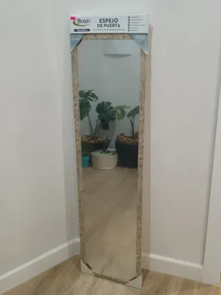 Espejo de puerta con un diseño elegante y un marco detallado. - Medidas: 30x120cm. - Marco con acabado en tonos beige y dorado. - Cristal de alta calidad. Sin estrenar NO ENVÍO al tratarse de cristal frágil de romperse.