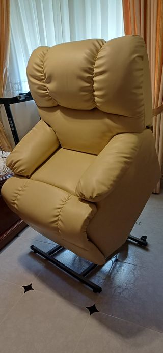 Sillón eleva personas diseñado para proporcionar comodidad y seguridad a persona con movilidad reducida, este sillón te permite levantarte y sentarte con toda comodidad, con suavidad y sin esfuerzo, incluye sistema de masaje corporal ,cuello, etc para dotar de una relajación extra. Está prácticamente nuevo - Tapizado en piel sintética de color beige. - Mecanismo elevador para facilitar el acceso. - Función de masaje relajante.