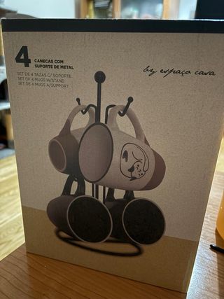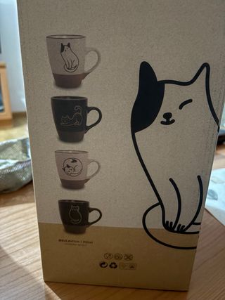 Conjunto de cuatro tazas con un encantador diseño de gatos. Incluye un soporte metálico para organizarlas. - Diseño de gatos en cada taza. - Soporte metálico. - Capacidad de 310ml por taza. - Dimensiones: 9x5.8x11cm. Juego de 4 tazas con gatos y soporte metálico 🐱☕ Juego de 4 tazas nuevas sin estrenar, sin desembalar, con su caja original y todo tal cual de fábrica. Incluye soporte metálico para mantenerlas ordenadas y también como elemento decorativo. Cada taza lleva dibujos de gatos diferentes, todas originales y distintas entre sí, ideales para amantes de los gatos. Un conjunto bonito, práctico y perfecto tanto para uso diario
