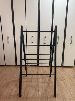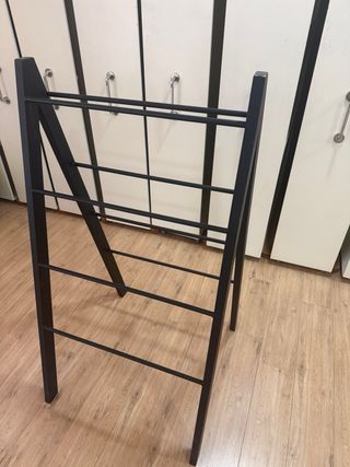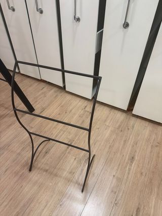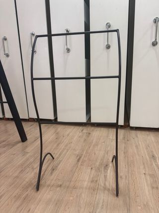 Caballete de forja en color negro. Su diseño es moderno y elegante. - Estructura de metal. - Diseño de líneas rectas.