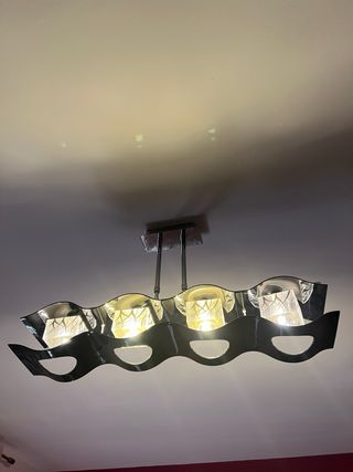 Lámpara colgante verde y cromada y plafón