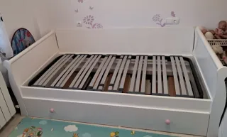 Cama nido góndola de la marca Bainba. Diseño elegante y funcional. Medidas en la foto Incluye somieres Los tiradores están un poco desgastados (se ve en foto) pero es algo que se puede cambiar, por lo demás está bien. Está desmontada