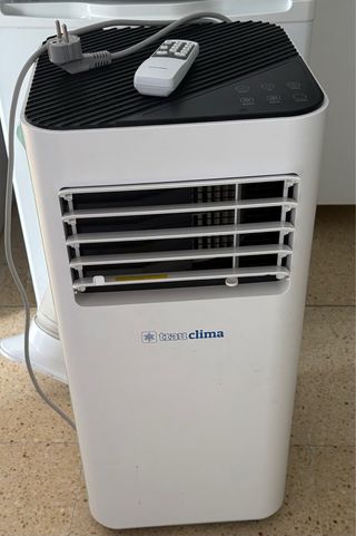 Aire acondicionado portátil Trau Clima con un año de uso. - Color blanco y negro. - Fabricado en plástico.