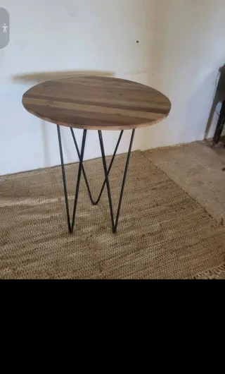 Mesa alta madera teca reciclada y metal