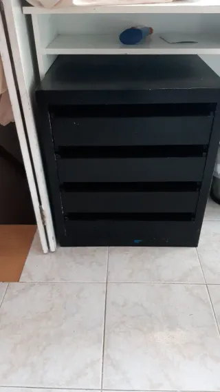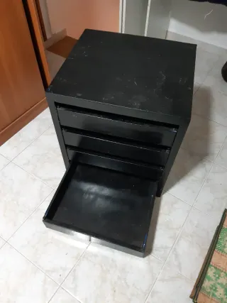 Mueble cajonera de color negro, los cajones deslizan bien. Si está a la vista necesita una mano de pintura.
