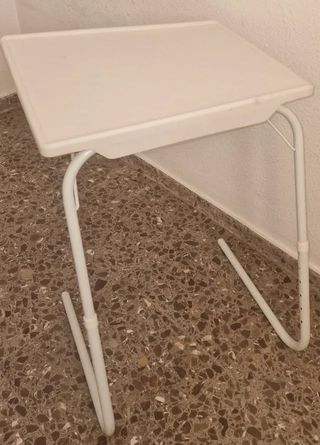 Mesa auxiliar blanca, muy práctica y fácil de guardar. - Patas plegables para un almacenamiento compacto. - Superficie lisa y fácil de limpiar.
