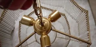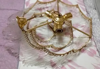 Lámpara con detalles de cristal transparente y estructura en metal dorado
