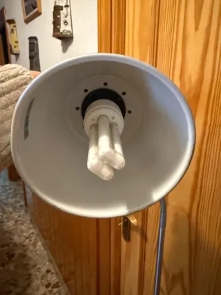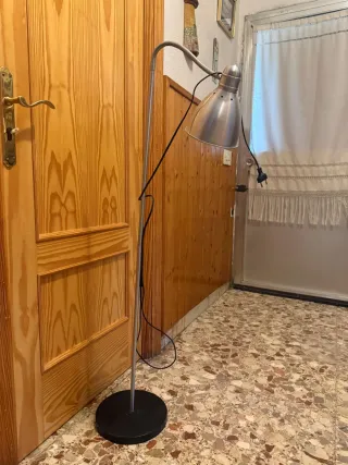Lámpara de pie con un diseño moderno y funcional. Ideal para cualquier espacio. - Estructura de metal y plástico. - Color gris y blanco.