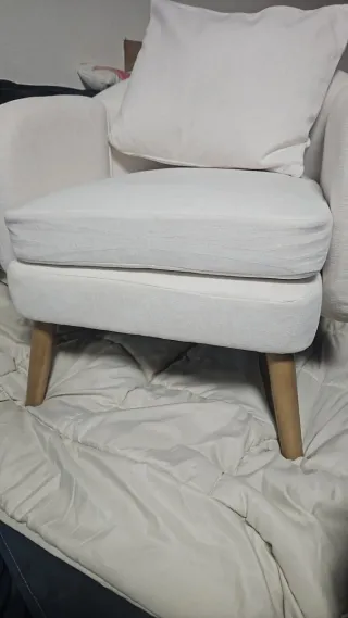 Sillón tapizado beige y blanco