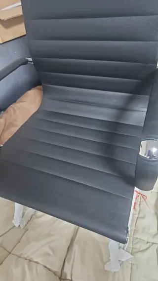 Silla de oficina con un diseño moderno y elegante. - Base voladiza. - Asiento y respaldo acanalados. - Brazos cromados.
