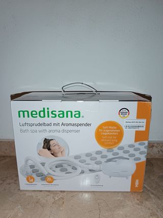 Alfombra de baño Medisana con dispensador de aromas para un relajante baño de burbujas. Cuenta con tres niveles de intensidad para personalizar tu experiencia. - Incluye dispensador de aromas. - Tres niveles de intensidad de burbujas. - Apagado automático a los 20 minutos. Se vende nuevo sin estrenar, lo vendo por no haber usado El precio real fue 140€