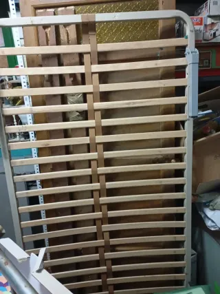 Somier de la marca Pikolin en color beige y marrón. - Estructura de metal y madera. - Medidas de 90x182 cm. Es bastante antiguo y usado , 10 euros sin patas, 20 con las patas