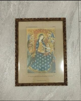 Cuadro Virgen María y Niño Jesús vintage antiguo.