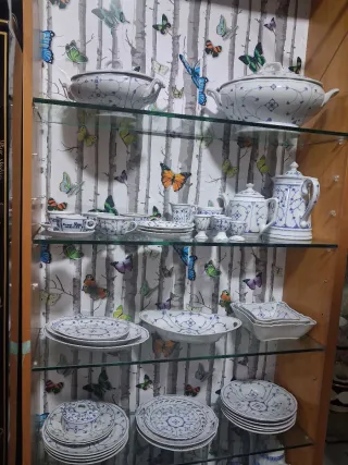 Antigua vajilla alemana porcelana azul y blanco