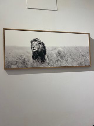 Precioso cuadro de gran tamaño con una bonita estampa de plantas tropicales. Es una pieza decorativa ideal para darle un toque de naturaleza a tu hogar. - El cuadro tiene un marco de madera. - Las medidas son grandes, perfecto para espacios amplios. - Los colores son beige y verdes, creando una atmósfera relajante. - Listo para colgar. - Medidas: 1,20 metro de largo, 80 cm de alto, 5 cm de profundidad.