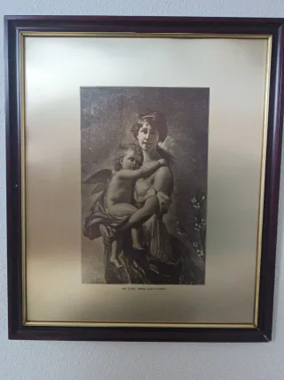 Precioso cuadro con una escena maternal. - Marco de madera. - Papel de alta calidad.