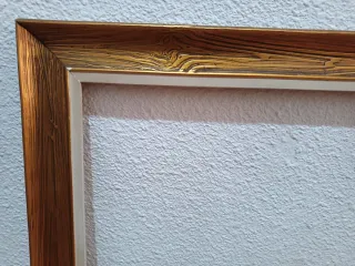 Marco de cuadro con un diseño elegante que combina tonos madera y dorado. Ideal para realzar tus fotografías o láminas. - Acabado texturizado que imita la veta de la madera. - Borde interior en color crema.