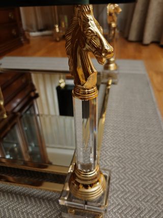Mesa de centro cristal y metal dorado