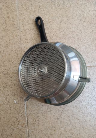 Pasapurés acero inoxidable, marca Moulinex, con dos discos, apto para lavavajillas, de 20 cm. de diámetro y 10 cm. de alto. Sin estrenar.