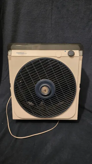 Ventilador de sobremesa/suelo, marca Taurus Tropicana 7F. Antiguo, de cuando las cosas se fabricaban para funcionar toda la vida, y aún funciona perfectamente. Evidentemente no es tan silencioso como uno moderno, pero tiene potencia de sobra. Lo vendo porque tenemos A/C y me molesta tirar a la basura cosas que aún funcionan. - Color blanco y detalles en azul. - Controles de velocidad y apagado. - Modo circulación activable, mueve el aire por toda la habitación al hacer rotar el disco de dirección.