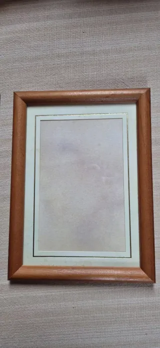 Conjunto de siete marcos de fotos de diferentes estilos y tamaños. 5 euros si los compras por separado, 32 si los compras todos. - Marco de madera con borde festoneado. - Marco de madera con acabado liso. - Marco de madera con borde dorado. - Marco negro para fotografía. - Marco de diploma con borde azul. - Marco blanco con diseño floral. - Marco azul con figuras de animales.