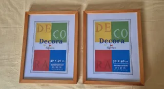 Se venden dos marcos de madera de la marca Hofmann. Son ideales para fotografías o láminas. También pueden servir para hacer un cubre contador o un colgador de llaves (ver ultimas dos fotos ejemplos) - Medida interior del marco: 30 x 40 cm. - Medida interior del passepartout: 20 x 30 cm. Medidas exteriores 33 x 43 x 3cm