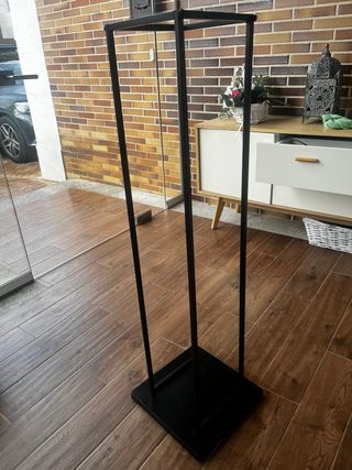 Este soporte para leña tiene un diseño moderno y minimalista. - Estructura metálica. - Base cuadrada. Marca: Frank Flechtwaren. Estantería de metal para chimenea. La envío desmontada y no ocupa nada, un paquete súper plano. Queda muy bien, muy elegante en cualquier ambiente y sirve para decorar.