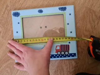 Elegante marco de fotos con un diseño de madera tallada que añade un toque clásico a tu hogar. Perfecto para exhibir tus recuerdos más preciados. - Detalles tallados en los bordes. - Acabado en tono madera oscuro. Foto tamaño 17x12.