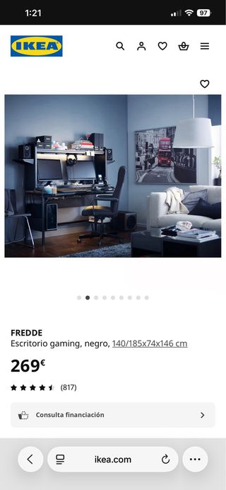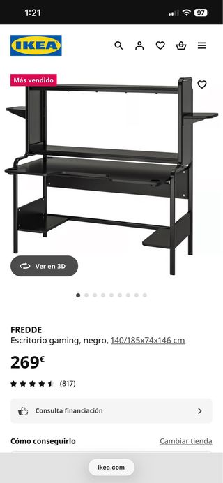 Escritorio gaming FREDDE de IKEA, ideal para tu setup. - Diseño moderno y funcional. - Amplia superficie de trabajo. - Estructura robusta. Lo doy por 70 euros porque me urge quitarlo. Nuevo vale 270. En buen estado